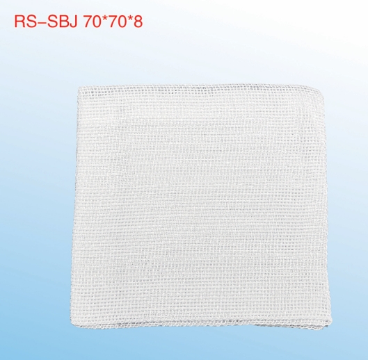 無切邊外露的長方形或方形敷料;RS-SBJ由紗布折疊成長方形或方形,四周縫合,角部可縫